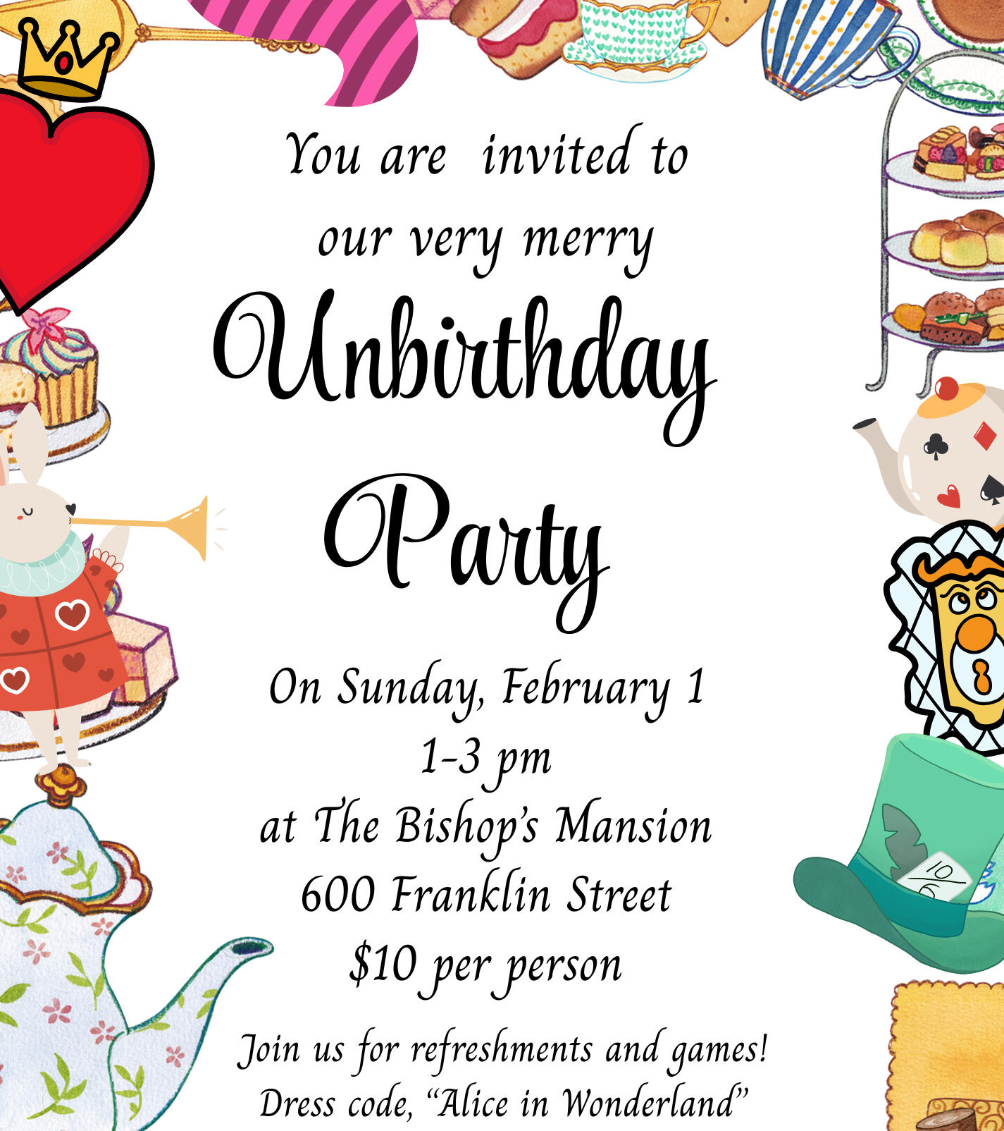 Together, we’ll celebrate our Unbirthdays with refreshments and games! Don't be late! RSVP and confirm you will be joining us!